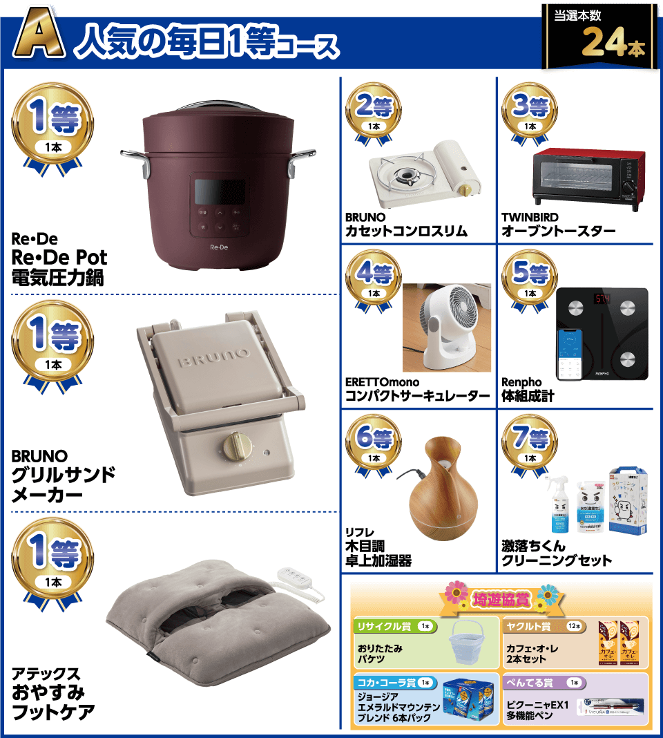 ※各賞品はモデルチェンジなどによりデザイン・内容等が変更になる場合があります。あらかじめご了承ください。