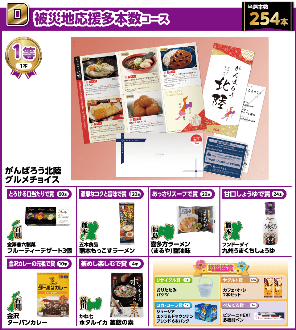 ホールによって賞品は異なりますので、開催ホールにて賞品内容をご確認ください。